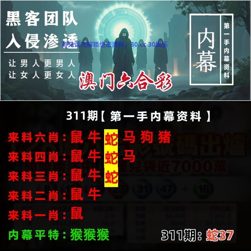| 311期(复式六肖)【马羊蛇鸡兔牛】开:2个 |