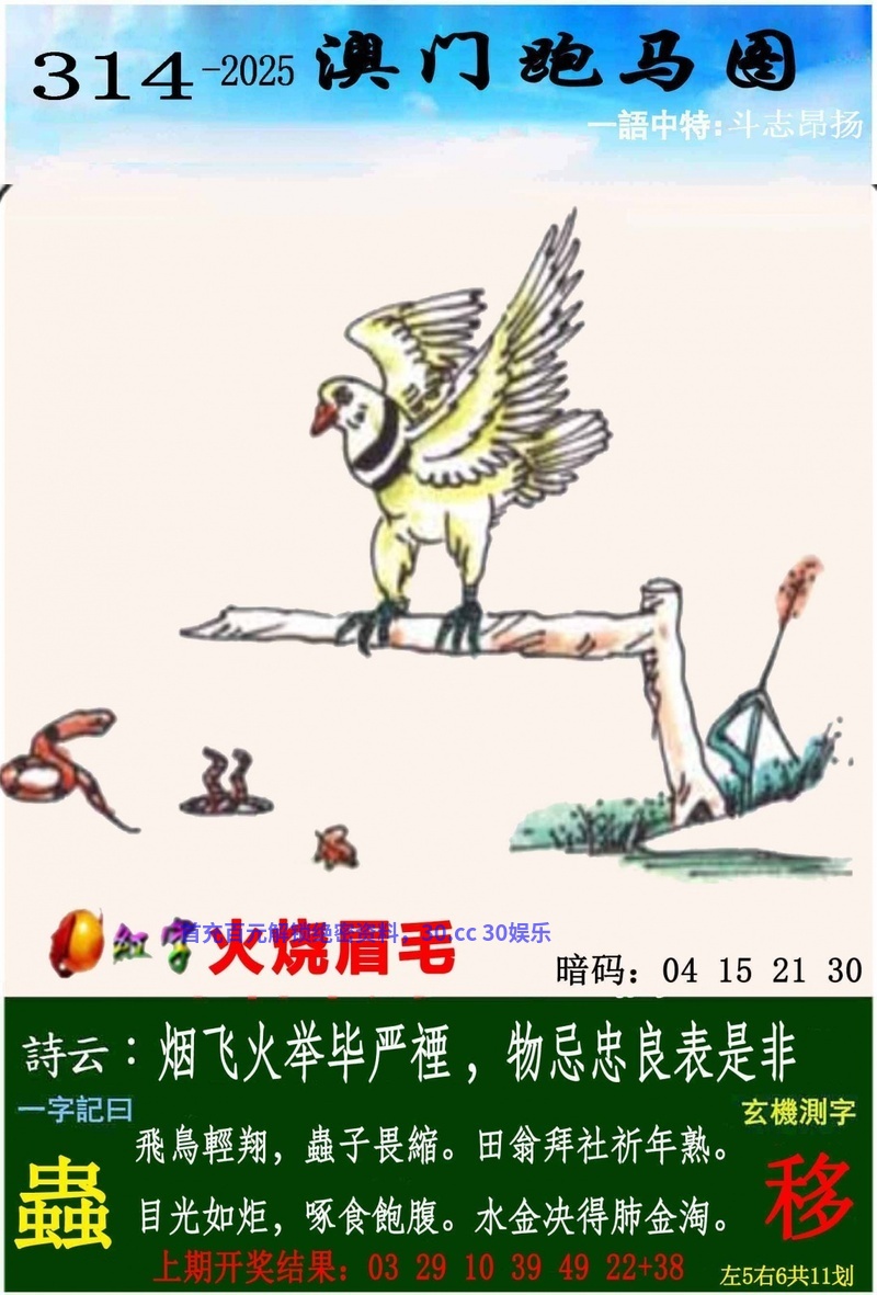 | 314期 | 鸡肖 | 绿双 | 0尾 | 0头 | 羊23 |